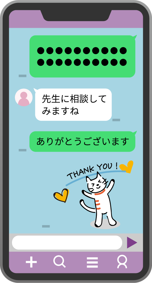 ※チャットは薬局とのみで、主治医とのチャットは行えません。